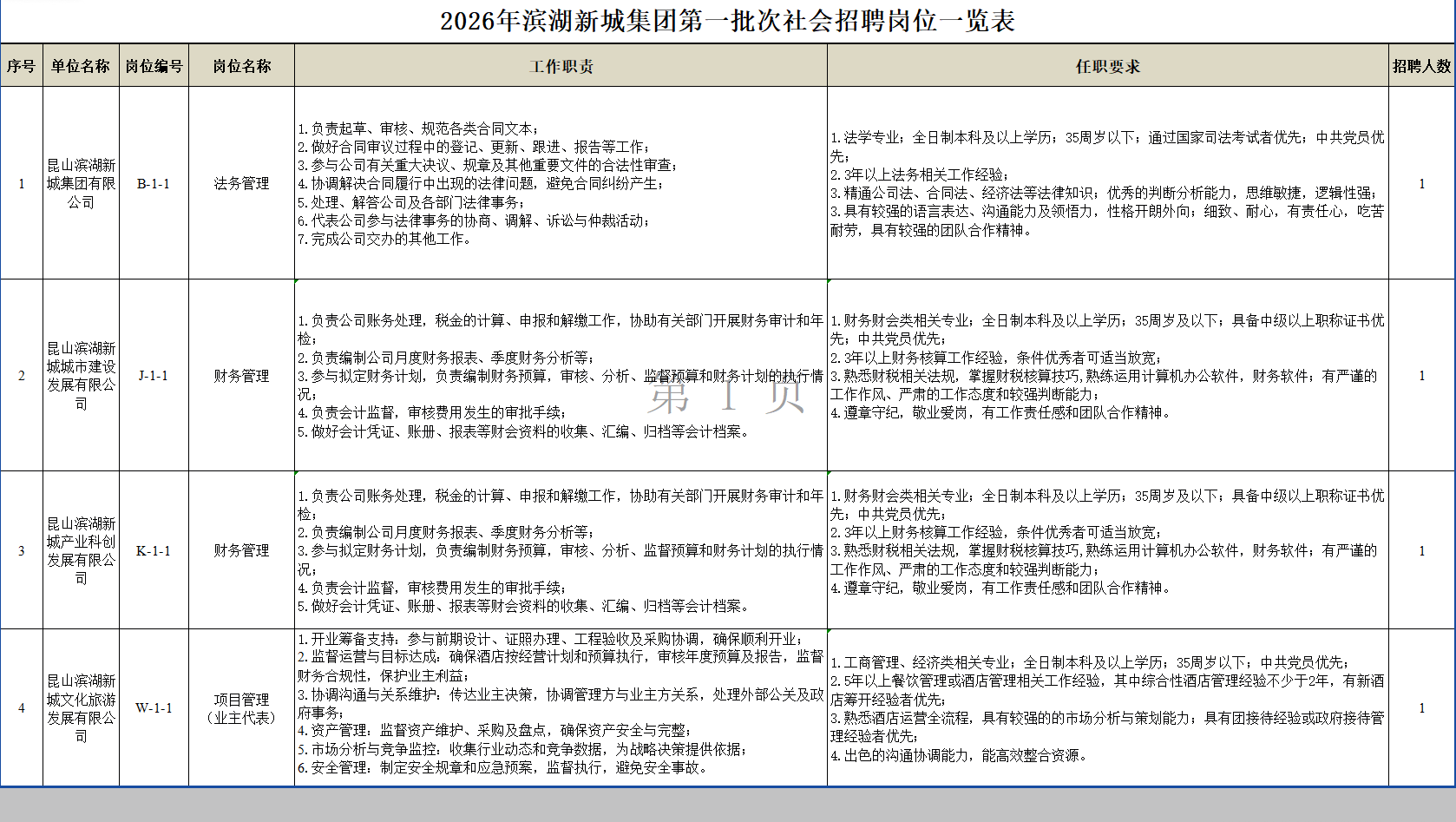 招聘岗位及任职要求详见《2026年滨湖新城集团第一批次社会招聘岗位一览表》(附件1)。